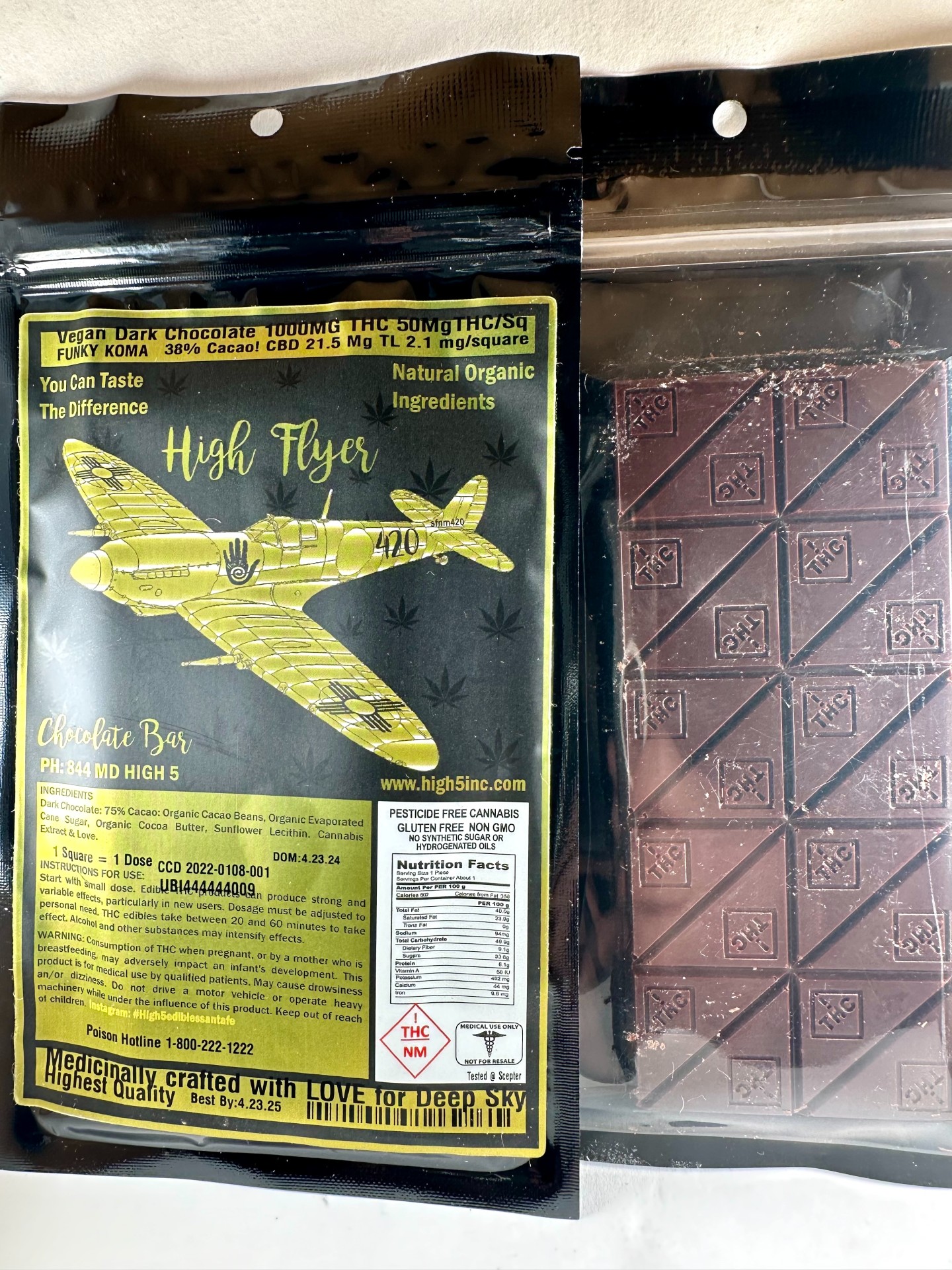 High Five Edibles - High Flyer 1000 - Dark Chocolate bars - 1000mg (MEDICAL ONLY)